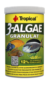 - 3-ALGAE GRANULAT are slowly sinking granules, rich in algae. Intended for everyday feeding of freshwater and marine herbivorous fish, whose diet is based on algae, and omnivorous fish – as a supplementary food