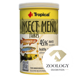 • Multi-ingredient food in the form of flakes based on 3 insects: hermetia (15%), silkworm (15%) and mealworm (15%) for omnivorous and carnivorous fish