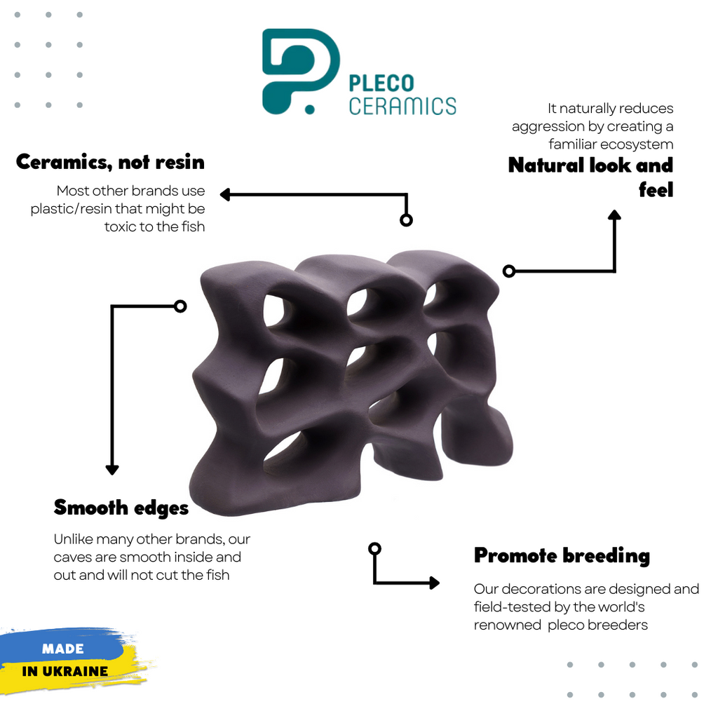 - High-quality ceramics. Made by PlecoCeramics. Dimensions: 9.8" x 6.3" x 3.2" in