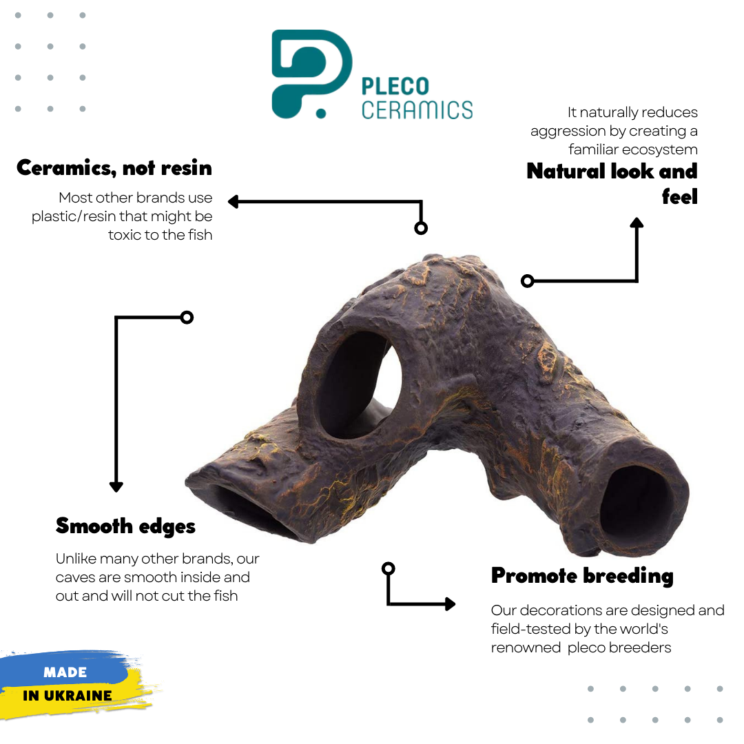 - High-quality ceramics. Made by PlecoCeramics. Approximate dimensions: 8.9 x 5.5 x 4.3 in